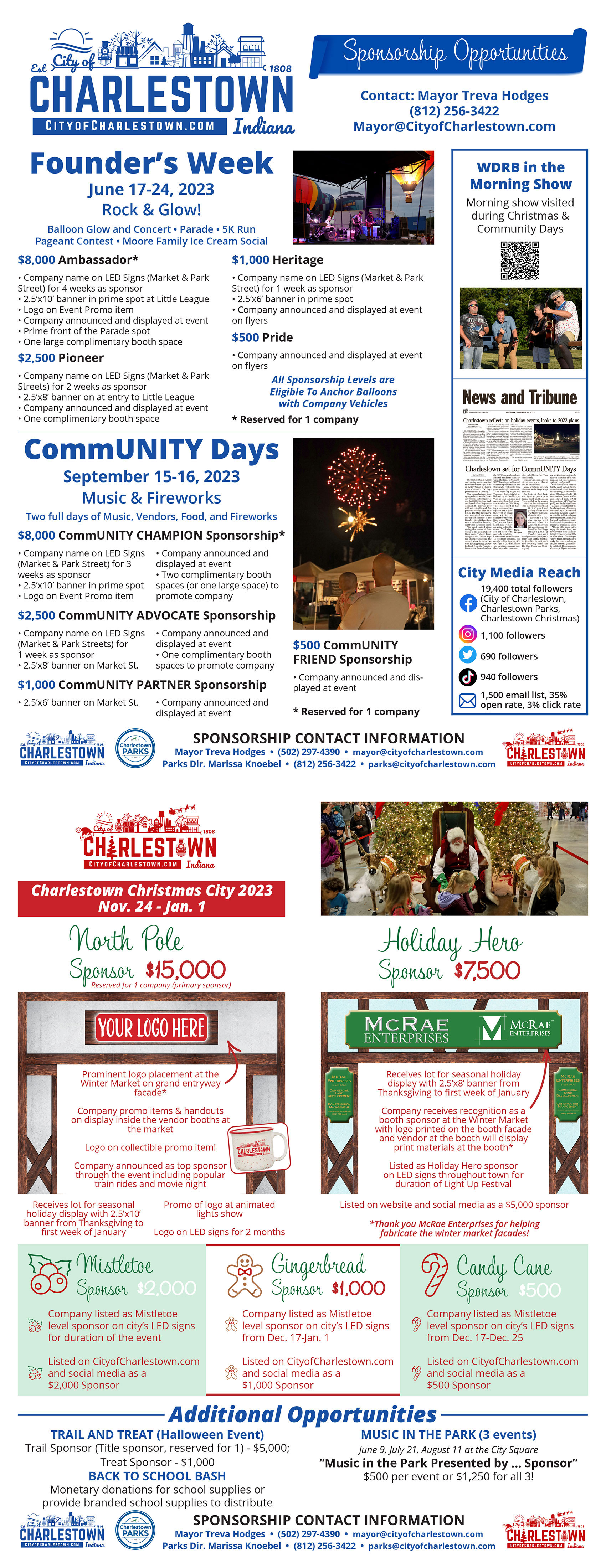 • Listed on CityofCharlestown.com and social media as a $2,000 Sponsor